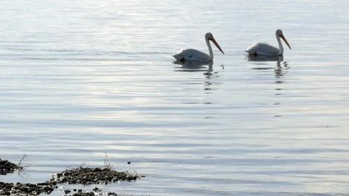 Pelicans near the outlet that feeds the Ciénega with salty water from Arizona: